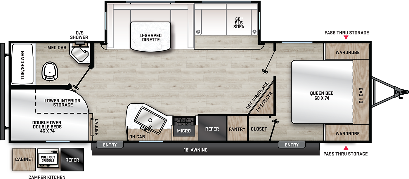 Cherokee Grey Wolf 27GH front kitchen travel trailer floorplan
