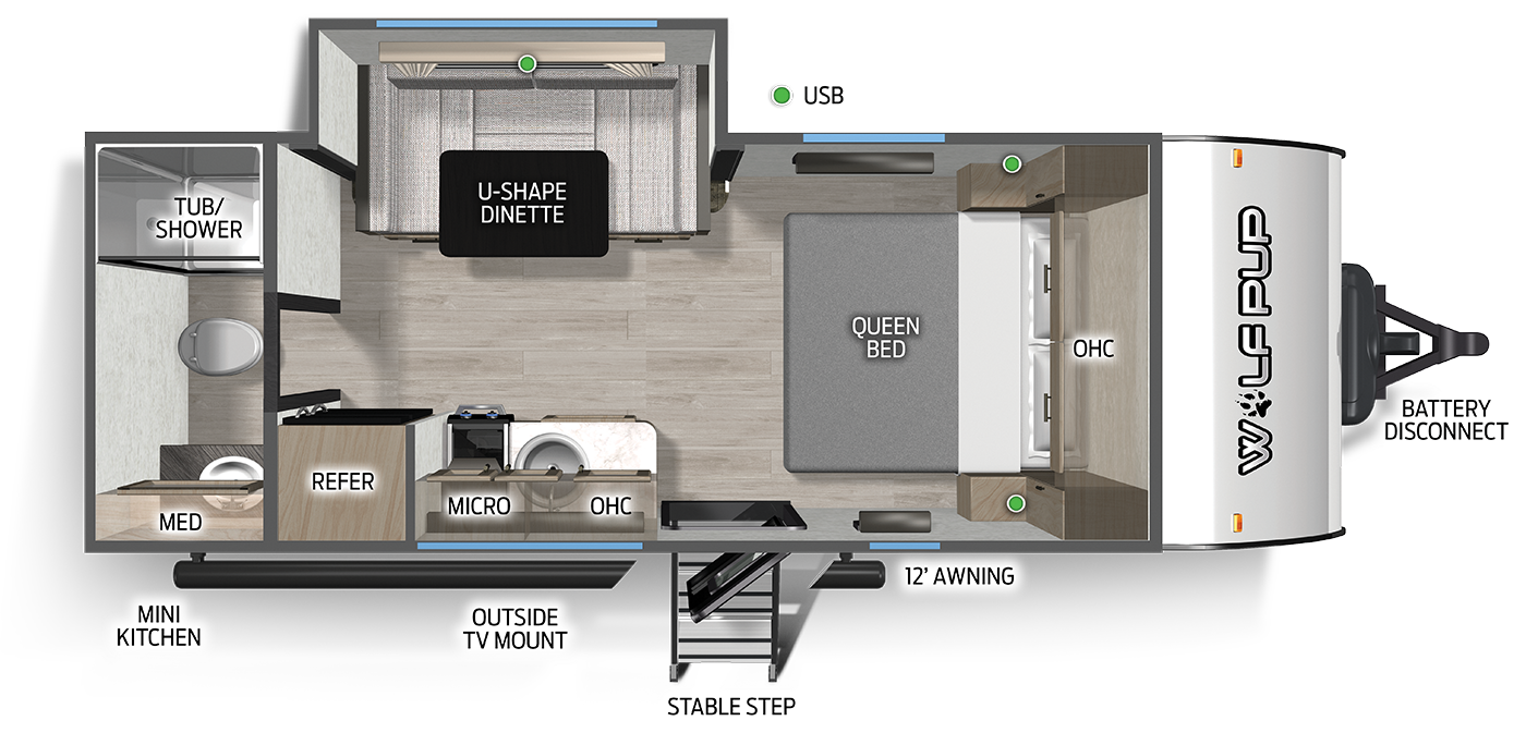 Forest River Cherokee Grey Wolf 22CE couples travel trailer floorplan